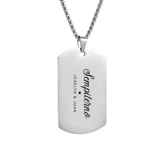 Collar estilo militar plateado con texto personalizado